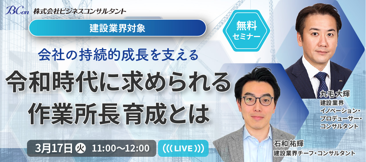 【建設業界対象】 会社の持続的成長を支える 令和時代に求められる作業所長育成とは 無料セミナー