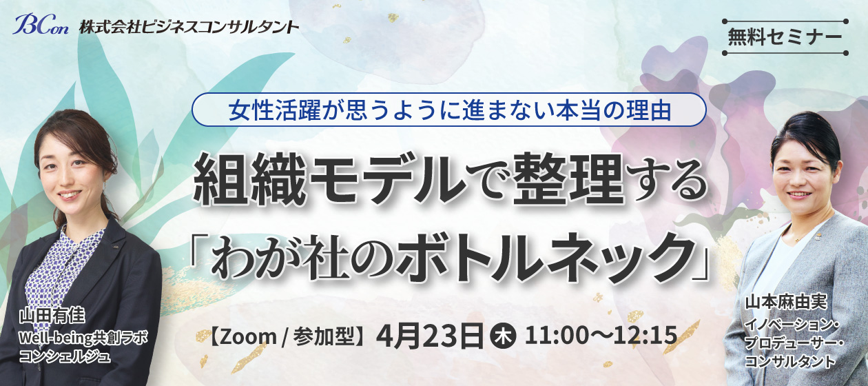 【25名様限定】女性活躍が思うように進まない本当の理由 組織モデルで整理する「わが社のボトルネック」無料セミナー